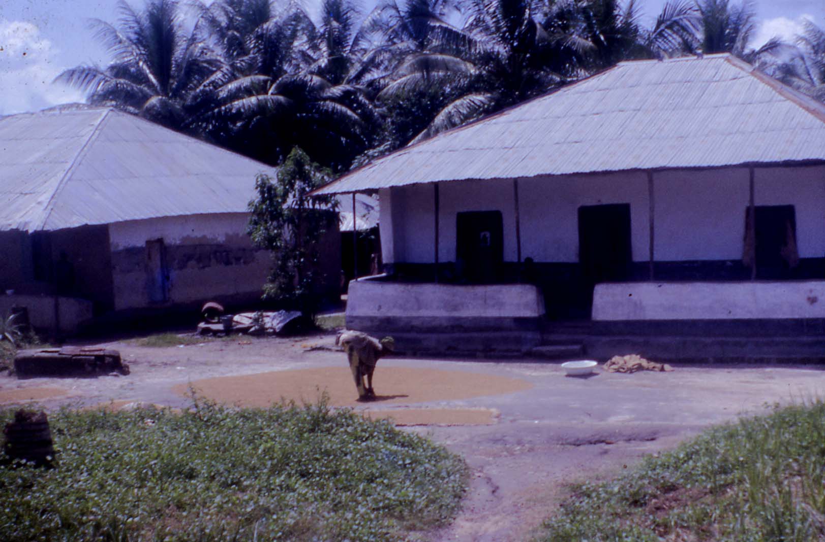 Drying rice in yard |